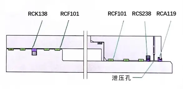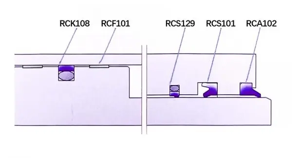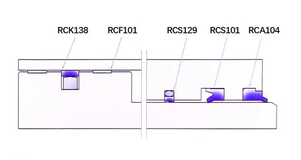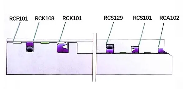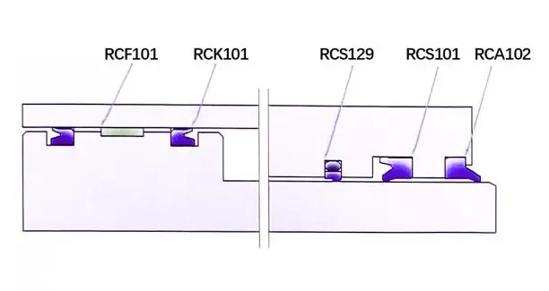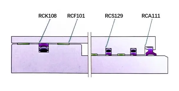 Dari segi reka bentuk teknikal, produk siri Seal Turning Seal berpusat pada fleksibiliti. Terdapat meterai umum (seperti RCA101/104/105) yang dipasang dengan diameter luar yang diekstrusi, yang serasi dengan alur standard ISO 6195-A dan sesuai untuk senario ruang padat; Terdapat juga model dengan rangka anti-ekstrusi bersepadu (seperti RCA103/106), yang meningkatkan kestabilan struktur di bawah beban dinamik melalui reka bentuk alur terbuka paksi (ISO 6195-B). Untuk keadaan kerja khas, RCA107 menyokong pemasangan alur yang cenderung 30 ° dan bersesuaian dengan peralatan imperial dan metrik, manakala RCA108 memudahkan proses penyelenggaraan silinder lama melalui reka bentuk penetapan bebibir, dengan ketara mengurangkan kos transformasi.