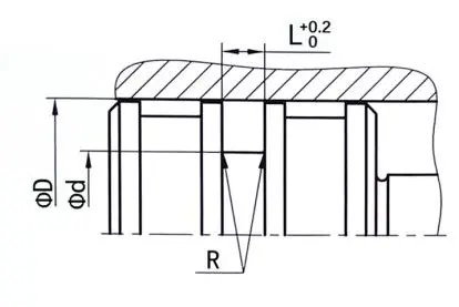 Berikut adalah dimensi alur standard (meterai habuk dari sebarang saiz dalam julat saiz boleh dihasilkan) |