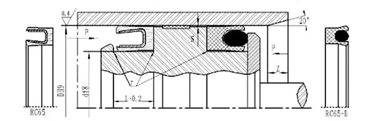RC65-B-40-PTFE4+R02: Diameter gerek 40, bahan gelang pengedap ialah PTFE4, gelang O diperbuat daripada fluororubber.