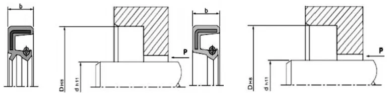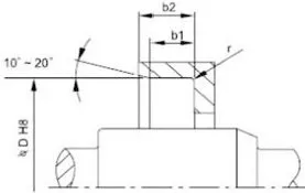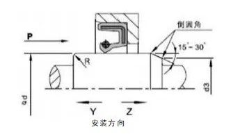 2. Reka Bentuk Aci Berputar dan Alur: Permukaan aci hendaklah licin dan bebas burr. Tanda pemesinan lingkaran boleh mencipta kesan pengepaman, yang membawa kepada kebocoran. Adalah disyorkan bahawa kawasan pelekap pengedap minyak dikisar hingga kekasaran permukaan Ra0.1-0.5µm, menjadi lebih licin dengan peningkatan kelajuan. Untuk kemudahan pemasangan dan pembongkaran, aci dan alur mesti direka bentuk dengan chamfer atau tepi bulat Lihat Rajah 1 dan 2.