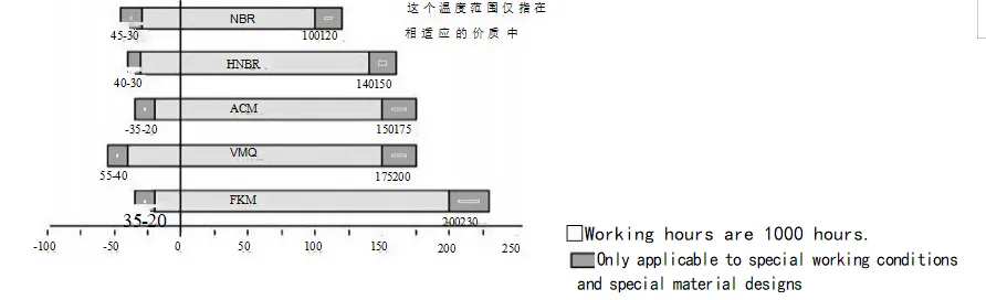 Terdapat berpuluh-puluh faktor yang mempengaruhi kesan pengedap. Selain pengedap minyak itu sendiri, seperti bahan dan strukturnya, faktor lain seperti sederhana, suhu, tekanan, pelinciran, kelajuan, dan kekasaran permukaan juga secara langsung mempengaruhi kesan pengedap, dan faktor-faktor ini sering berinteraksi antara satu sama lain. Carta berikut adalah untuk rujukan pengguna sahaja.