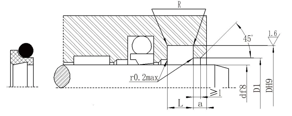 RCF02 - Model 80 - Diameter aci PTFE3 - PTFE RO1 yang diubahsuai umum - Kod bahan getah yang sepadan